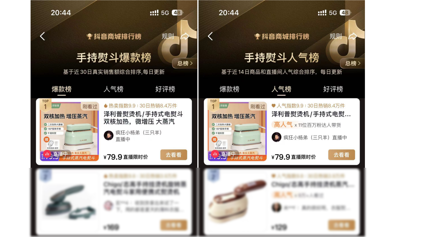 得益于过硬的产品质量、便捷的智能体验,泽利普自产品登陆抖音商城以来,不仅赢得了直播电商平台消费群体的喜爱,也取得了三只羊网络、遥望网络、辛选控股等头部主播信赖与合作,产品销量数据更是常年占据电熨斗行业市场前三的位置。