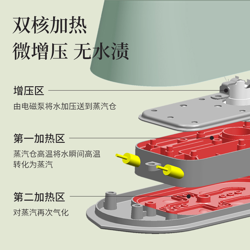 掌中熨斗,可让衣物时刻整洁!产品运用了微增压速热技术,释放强劲脉冲,细腻蒸汽喷射灵烫平整无水渍。